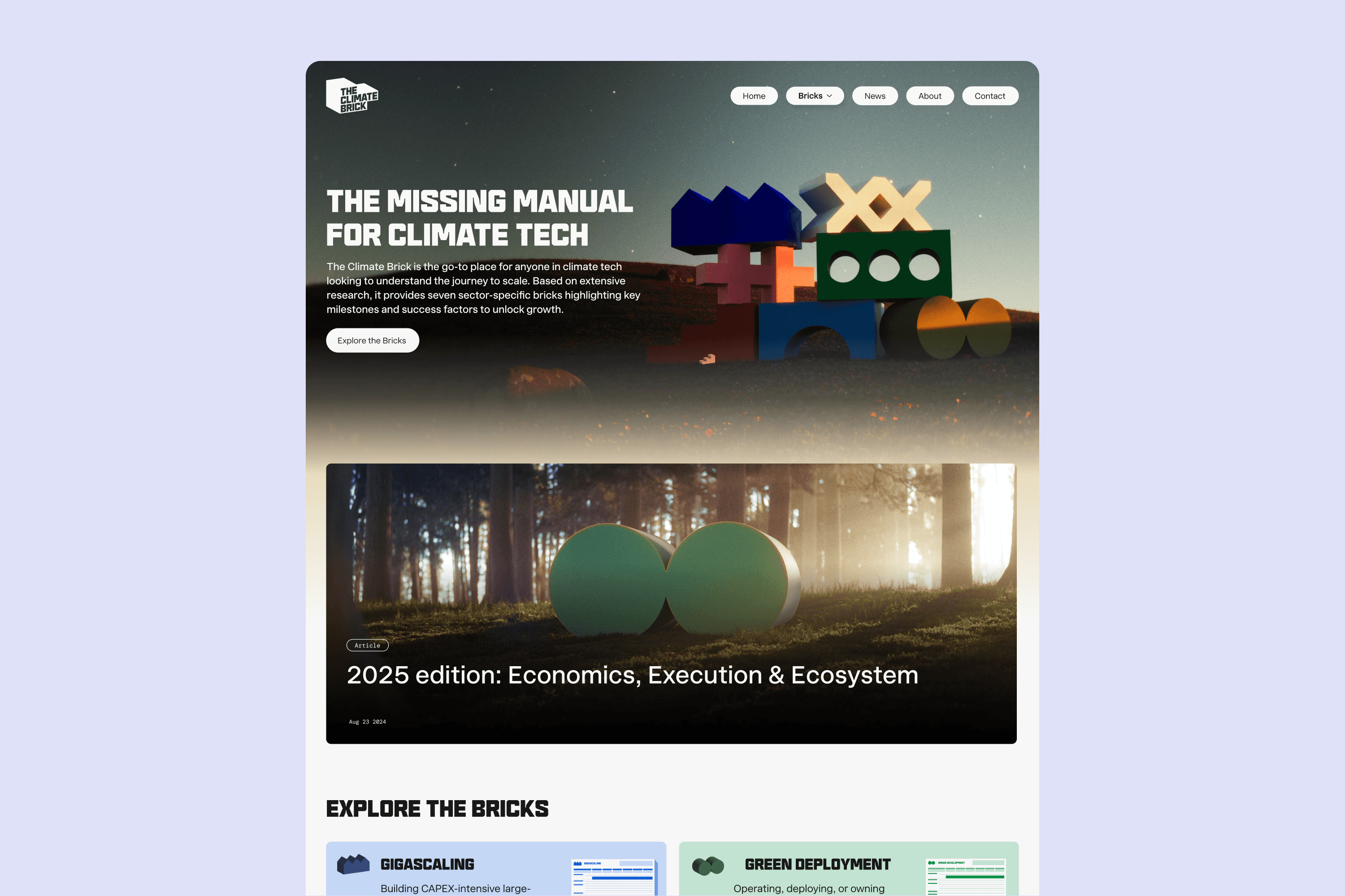 The Climate Brick is a strategic framework helping climate tech founders, investors, and operators navigate the path to scale. For the launch of its 2025 edition, the team partnered with Omoi to redesign the website from the ground up.